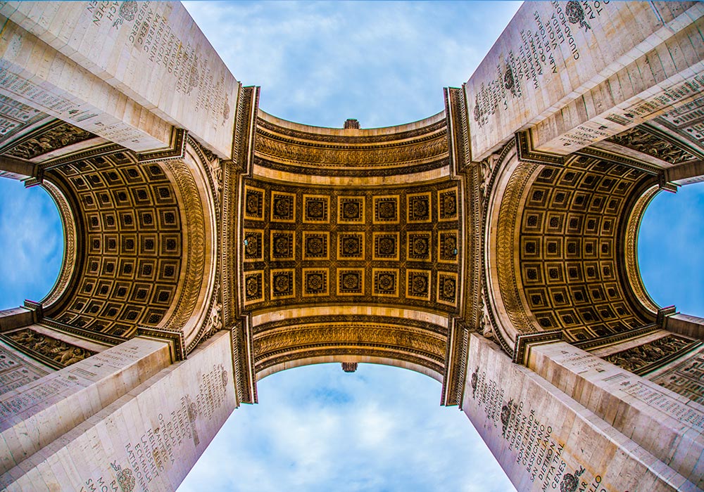 パリの凱旋門を下からとるとこのようなビックリ写真になります。